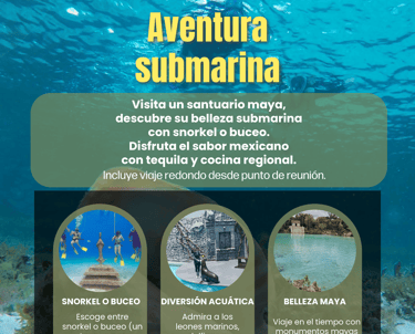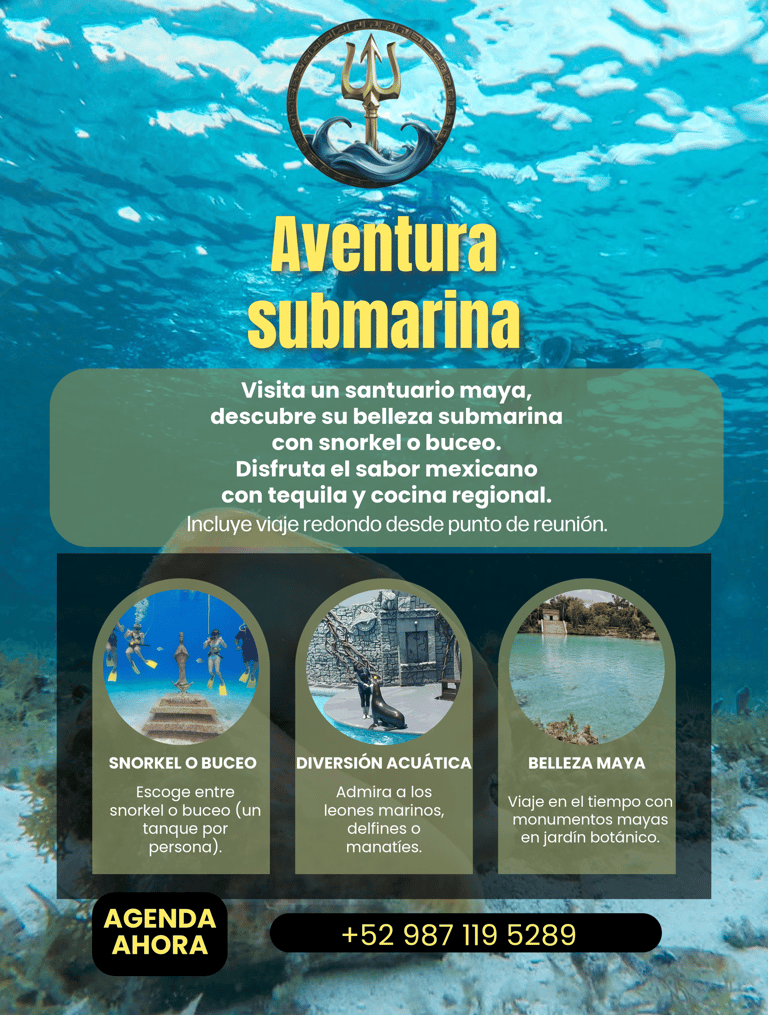 Visit a mayan sanctuary, travel time through monuments and nature and have luch at Happy Crap Restaurant.
